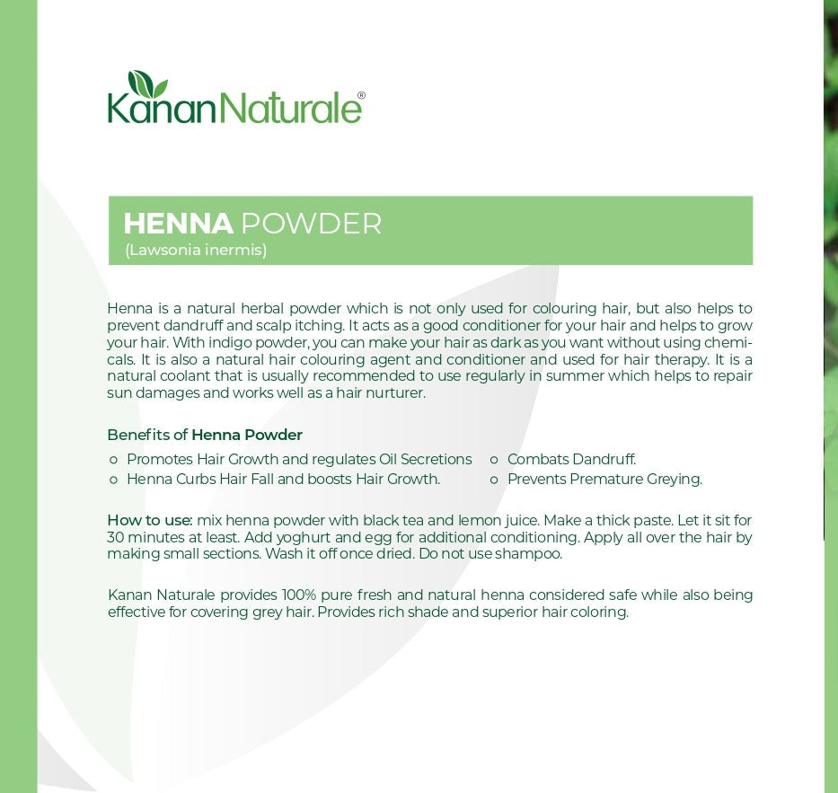 Kerala Naturals provides 100% pure fresh and natural henna considered safe while also being effective for covering grey hair. Provides rich shade and superior hair coloring.