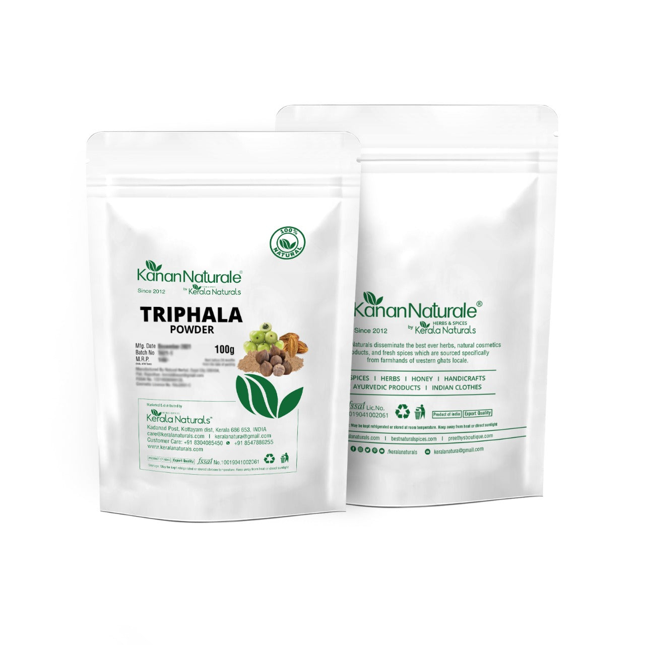 Kerala Naturals Triphala powder is 100% pure and natural. There is no chemicals and preservatives added in it. Thus we ensure good export quality products to its customers which is safe to take internally.